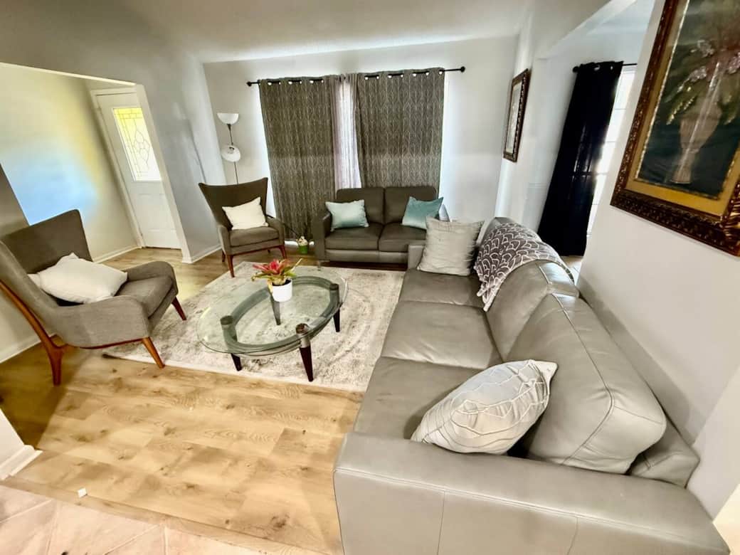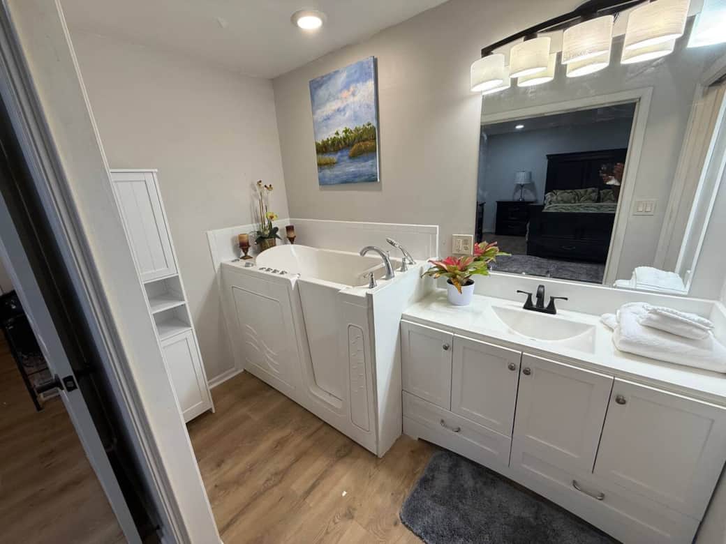 This fully equipped home is the best one in Jacksonville to host family and friends for special occasions. It has many upgrade that makes it ADA compatible throughout. Starting with wheelchair ramp to main entry, wide doors to bed and bathrooms, a walk in jacuzzi tub, and grab bars, It is pet friendly, where they can run freely around in the screen patio or large backyard. Finally, plenty of room to host family and friends for wedding, birthday, graduation, and holidays